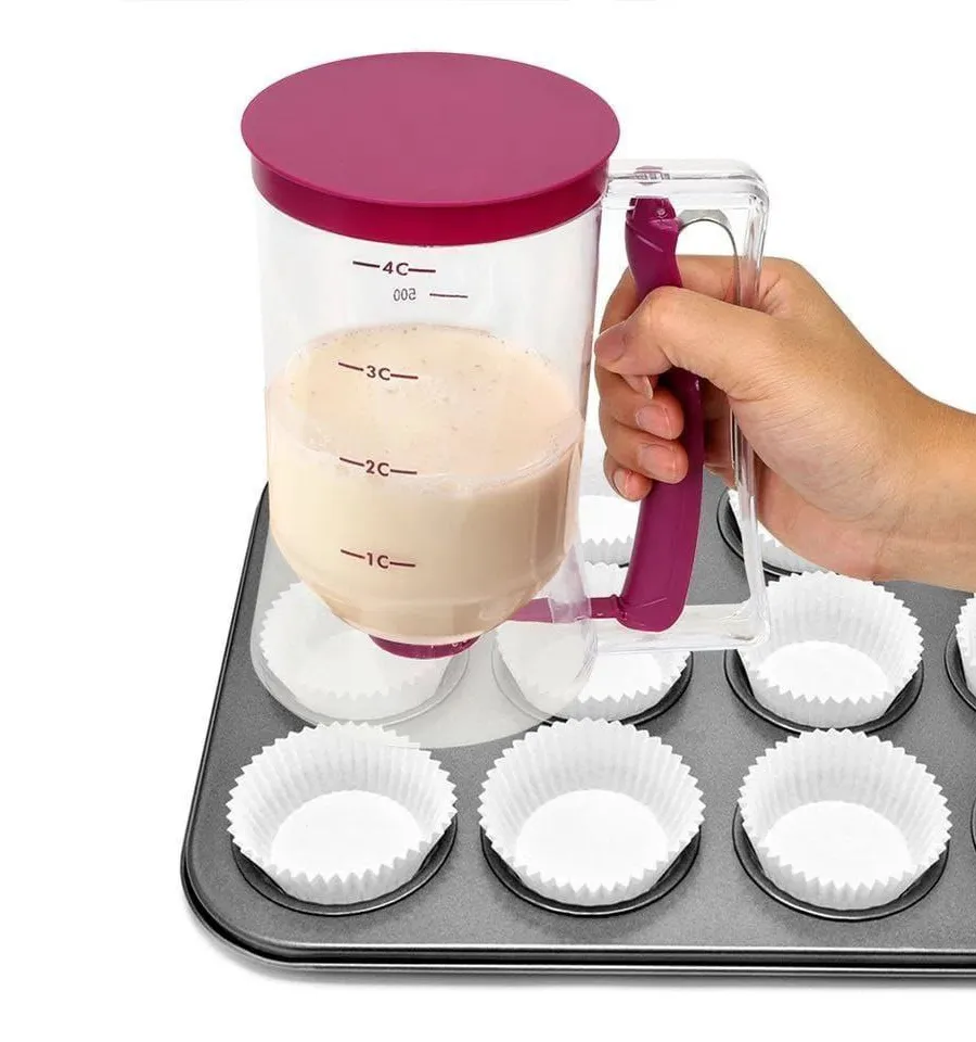اصنع حلوياتك بسهولة مع موزع عجين الكيك بسعة 900 مل! مصمم لتوزيع العجين بالتساوي، هذا الأداة العملية مثالية لتحضير المافن، الكريب، الوافل، الكاب كيك، والبان كيك دون فوضى أو هدر.