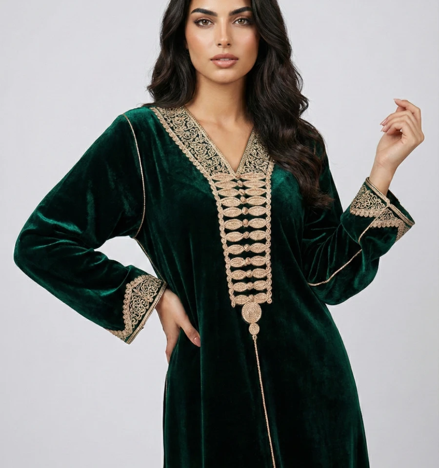 - Une gandoura pensée pour celles qui recherchent tradition, élégance et qualité, dans une pièce durable et raffinée.